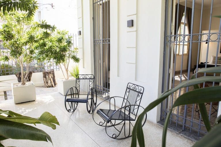 Malecón embodies the perfect blend of history and modern refinement. This suite is distinguished by its high ceilings, generous natural light, and finishes in marble and local woods, which stand as a testament to exceptional craftsmanship and the essence of Cuban style. The elegant living room, furnished with restored period pieces and contemporary comforts, offers the perfect space to relax after a day exploring Havana. The walls are adorned with works by contemporary Cuban artists. The private terrace overlooking the garden, a natural oasis in the heart of the city, completes the experience.