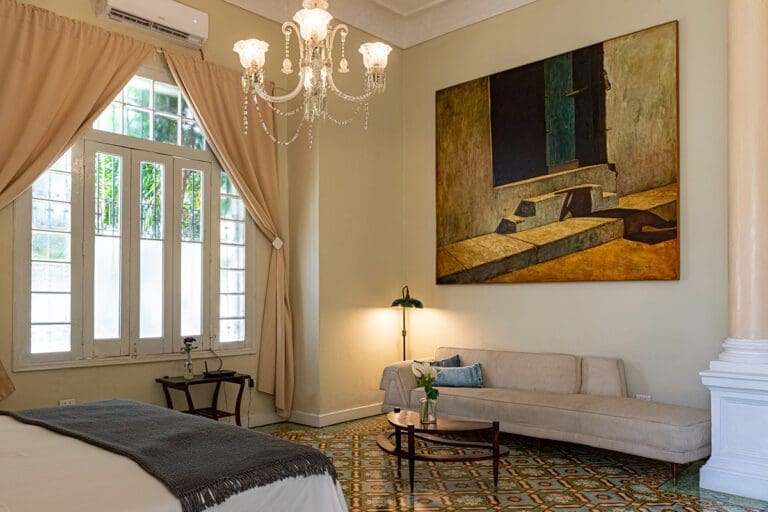If you want to feel the essence of an early 20th century Havana interior, with its refined notes and native distinction, this is the room you are looking for. The Presidentes Suite is its own inspiration. A large part of the original elements of the house have been preserved, allied to modern comfort.